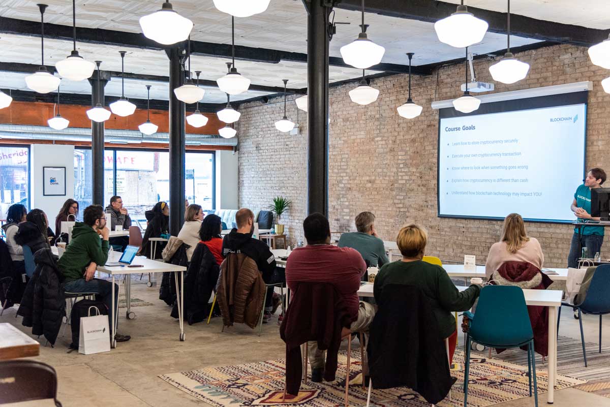 During August 2019 we moved into Hackhaus, a co-working space located in the Uptown neighborhood of Chicago. The new location gave us the ability to host in-person courses and meetups. Our first in-person class, the Crypto Curious Course, was previewed in November 2019 and premiered on January 25th, 2020.